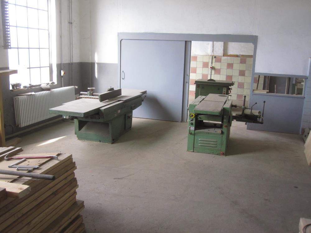 Hier ein Bild von der Tischlerwerkstatt des Bahnbetriebes. Erkennbar sind einige Maschinen, die zum Schneiden und Abrichten von Holz benötigt werden. Hier wurden hölzerne Einrichtungsgegenstände des Bahnbetriebswerkes, aber auch Fußbödenbeläge oder Deckenauskleidungen von Lokomotiven hergestellt und repariert. Die Maschinen sind betriebsfähig und werden auch heute noch für Holzarbeiten im Museum benutzt.