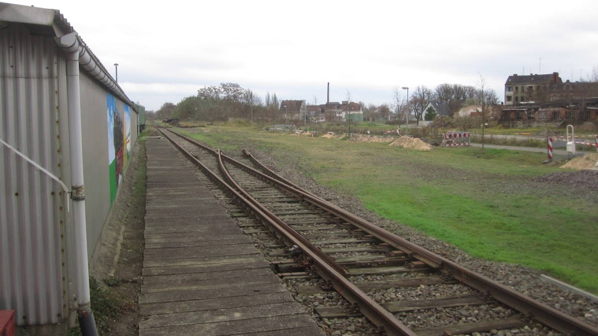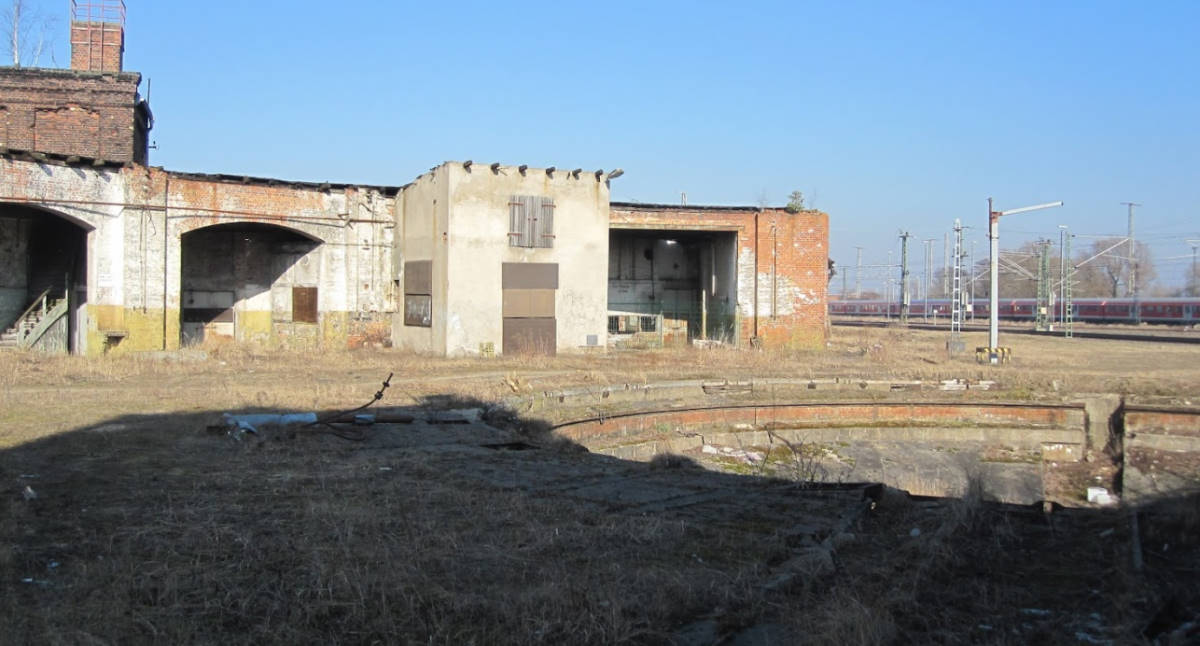 Im Bereich des ehemaligen Lokschuppens I konnte man vor gut 10 Jahren noch die Grube der ehemaligen Drehscheibe erkennen. Heute ist die Grube verfüllt und es führt ein Gleis darüber.