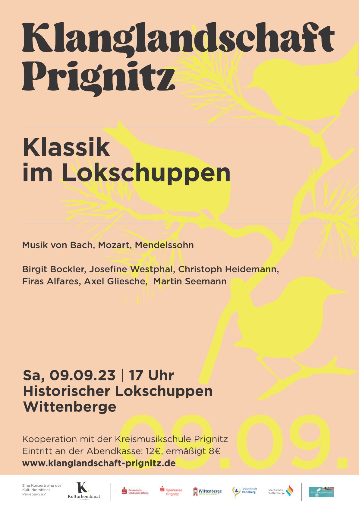 Am 9.9.2023 gibt es dann ab 17 Uhr Kultur der klassischen Art in unserem Museum. Unter dem Motto Klanglandschaften Prignitz wird uns das Kulturkombinat Perleberg mit der Musik von Bach, Mozart und Mendelsohn erfreuen. Ein spät-sommerlicher Hochgenuss!