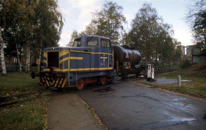 Die drei folgenden Bilder stammen von Heinreich Priesterjahn. Sie entstanden im Oktober 1986 in der alten Wirkungsstätte der Lok, dem Stickstoffwerk in Embsen bei Lüneburg.