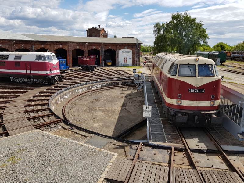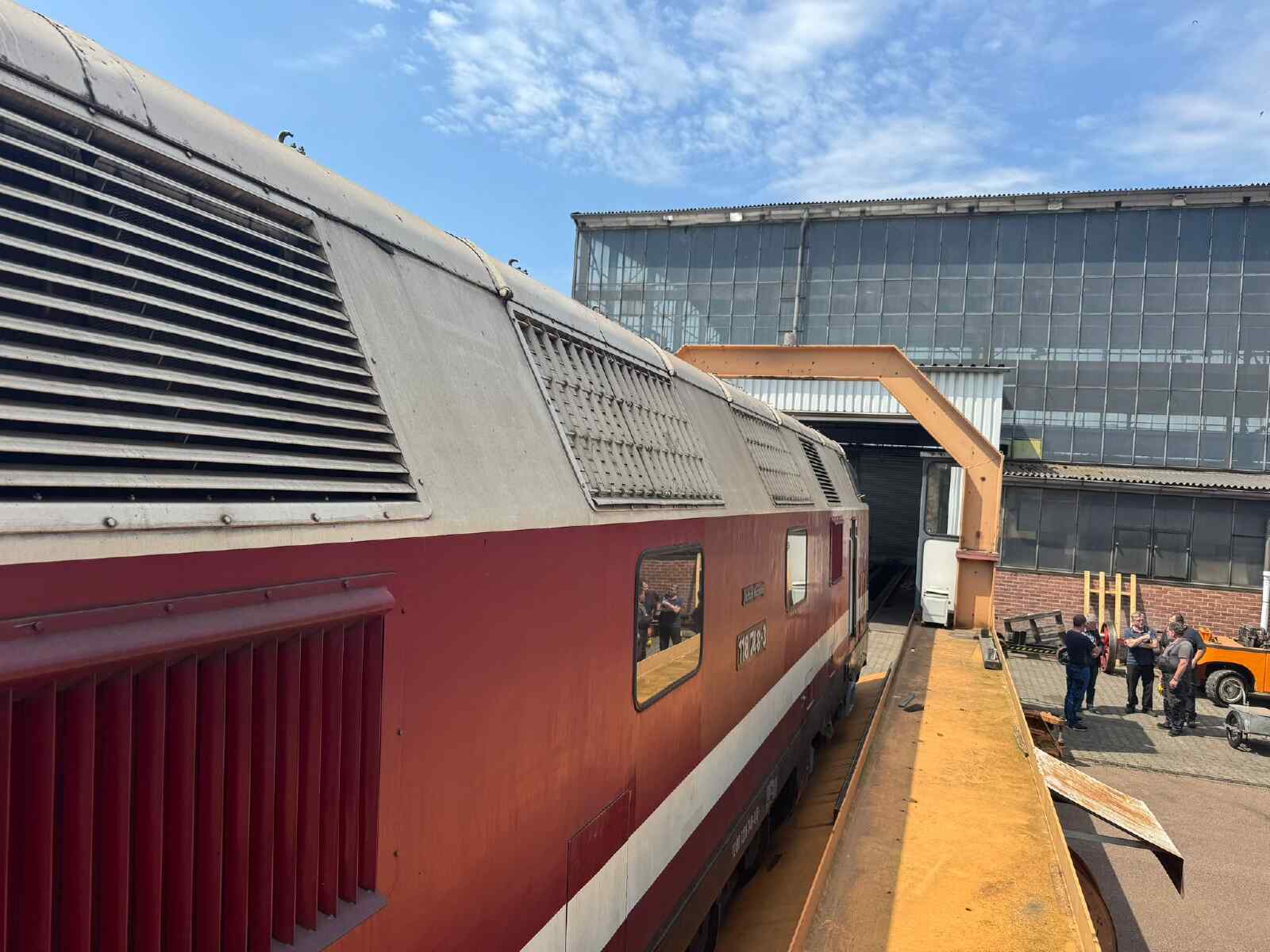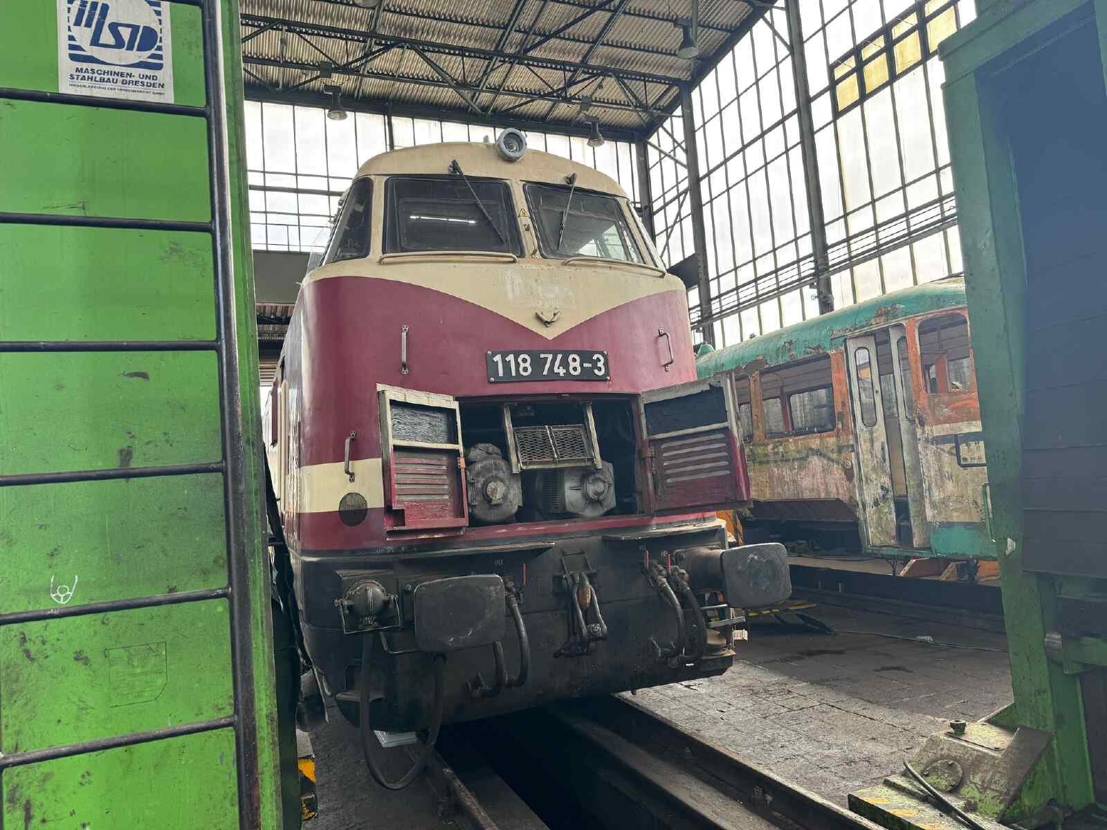 Wir sind auch schon gespannt auf die eigentliche Landesgartenschau, die in den großen Grünflächen in der Innenstadt von Wittenberge ausgerichtet wird. Wir empfehlen einen Blick auf die Internetseite der Gartenschau https://www.laga-wittenberge.de, die bereits jetzt Vielversprechendes von dieser Veranstaltung erahnen lässt. Ein Besuch der Schau und des Historischen Lokschuppens werden sich übrigens wunderbar kombinieren lassen. Wo wir eben schon über die Anreise nach Wittenberge per Bahn sprachen: Vielleicht ist Ihnen bereits bekannt, dass die Deutsche Bahn AG die Strecke Hamburg-Berlin in den kommenden Monaten grundlegend sanieren wird. Dabei werden nicht nur die Gleise dieser überaus wichtigen Strecke erneuert, sondern auch der Bahnhof Wittenberge wird umgebaut werden. So wird ein neuer Bahnsteig entstehen, um die Kapazität des Bahnhofs im Personenverkehr zu erweitern. Auch für den Güterverkehr wird es weitere Gleise geben. So sind bereits jetzt die Gleise der Anschlussbahn in den Hafen parallel zur Bahnstrecke nach Berlin elektrifiziert worden. Im Rahmen der künftigen Baumaßnahmen wird zudem eine neue Gleisverbindung der Rangiergleise in die Hauptbahn in Richtung Berlin geschaffen. Auch die Gleisanbindung des Museums und seiner Nachbarn an die Gleise des Bahnhofs Wittenberge wird umgebaut werden, so dass wir kurzfristig vom Gleisnetz der Deutschen Bahn getrennt sind. Und nun zum Wermutstropfen: Während der Arbeiten zwischen August 2025 und Frühjahr 2026 wird es nach jetziger Planung keinen Personenzugverkehr in Wittenberge geben, auch nicht aus Richtung Stendal oder Perleberg. Falls Sie uns also in dieser Zeit mit öffentlichen Verkehrsmitteln erreichen möchten, wird die Anreise leider beschwerlicher. Die Deutsche Bahn wird allerdings Busersatzverkehre einrichten, so dass Wittenberge während der Bauarbeiten grundsätzlich auch ohne Auto erreichbar sein wird. Nähere Informationen über die Bauarbeiten und Ersatzverkehre finden Sie auf der Internetseite der Deutschen Bahn: https://hamburg-berlin.deutschebahn.com/home.html. Kommen wir nun zu den Aktivitäten im Museum und seinen Fahrzeugen. Einige Besucher fragten bereits während der letzten Veranstaltung, wo unsere Diesellok 118 748 sei. Die Antwort lautet: Sie befindet sich noch in einer Fachwerkstatt, wo eine Hauptuntersuchung durchgeführt wird. Die entsprechenden Arbeiten sind fast abgeschlossen, die Lok steht wieder auf ihren eigenen Rädern und die Motoren laufen. Zurzeit erfolgen noch Restarbeiten wie der Einbau einer modernen Funkanlage. Sie ist Voraussetzung für den Einsatz der Lok auf öffentlichen Gleisen.