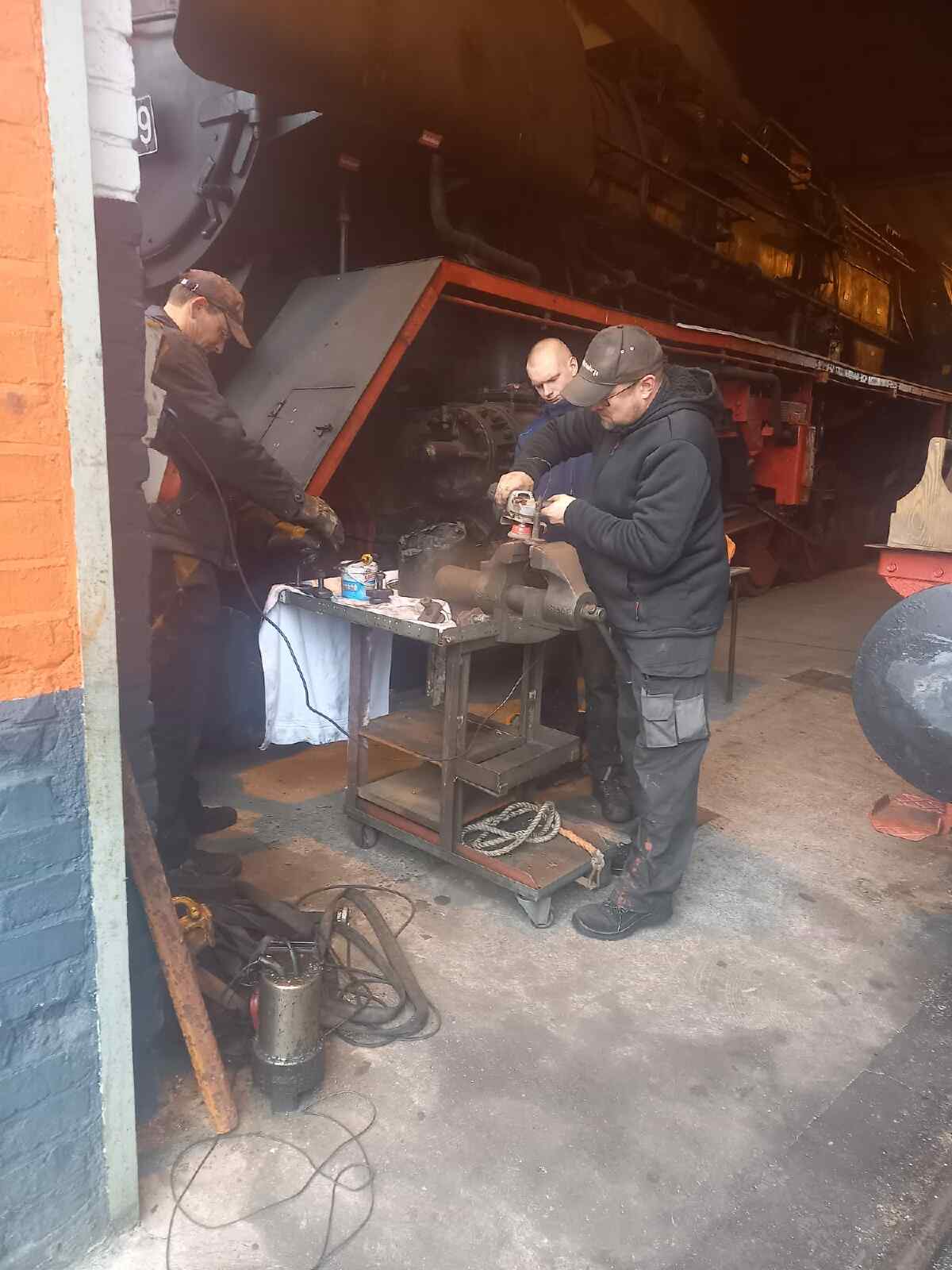 Wir berichteten bereits des Öfteren über die Aufarbeitung unserer Diesellok der Gattung V100.1, die die Nummer 114 774-3 trägt. Nachdem wir uns bereits vor einiger Zeit um das Fahrwerk und die Bremse der Lok gekümmert hatten, stand in den letzten Wochen der Motor im Mittelpunkt des Interesses. Für die Technik-Enthusiasten sei erwähnt, dass es sich um ein Aggregat des Herstellers VEB Kühlautomat Berlin-Johannistal handelt. Es erzeugt mit seinen 12 Zylindern und dem Turbolader eine Leistung von knapp 1.500 PS. Damit handelt es sich um die leistungsstärkste Motorvariante, die in Lokomotiven dieses Typs eingebaut wurde. Zwar war unser Motor seit der letzten großen Instandsetzung vor einigen Jahren nur ein paar Dutzend Betriebsstunden gelaufen. Allerdings waren im Laufe der langen Standzeit seit der Abstellung der Lok durch den letzten kommerziellen Eigentümer einige Undichtigkeiten am Turbolader aufgetreten, die zum Austritt von Öl führte. Bevor wir die Lok wieder einsetzen können, mussten diese Undichtigkeiten beseitigt werden. Dazu wurde der Turbolader und diverse andere Anbauteile aus dem Motorraum entfernt, um sie aufarbeiten zu können. Nachdem die Aufarbeitungen abgeschlossen waren, konnten sich unsere Diesellokfachleute wieder mit dem Zusammenbau beschäftigen. An diesen kleinen Bericht sind ein paar Fotos von der Aktion beigefügt. Wir danken an dieser Stelle herzlich den Schienenfahrzeugwerken Wittenberge für die Unterstützung. Demnächst werden die Arbeiten abgeschlossen. Wir freuen uns schon auf den Probelauf des Motors und der Lokomotive.