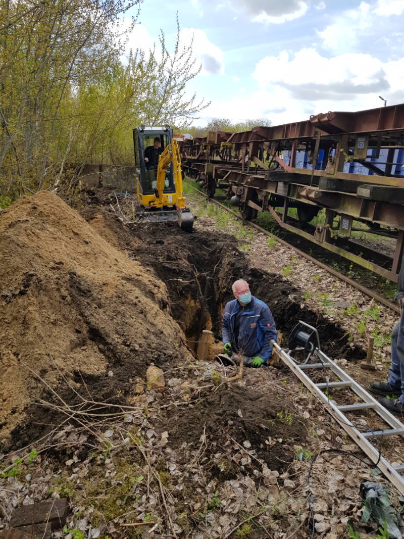 Und es wurde eine neue Löschwasserleitung vom Wasserturm auf die Magdeburger Bahnhofsseite verlegt. Gut, dass uns für diese Aufgabe ein Minibagger zur Verfügung stand.