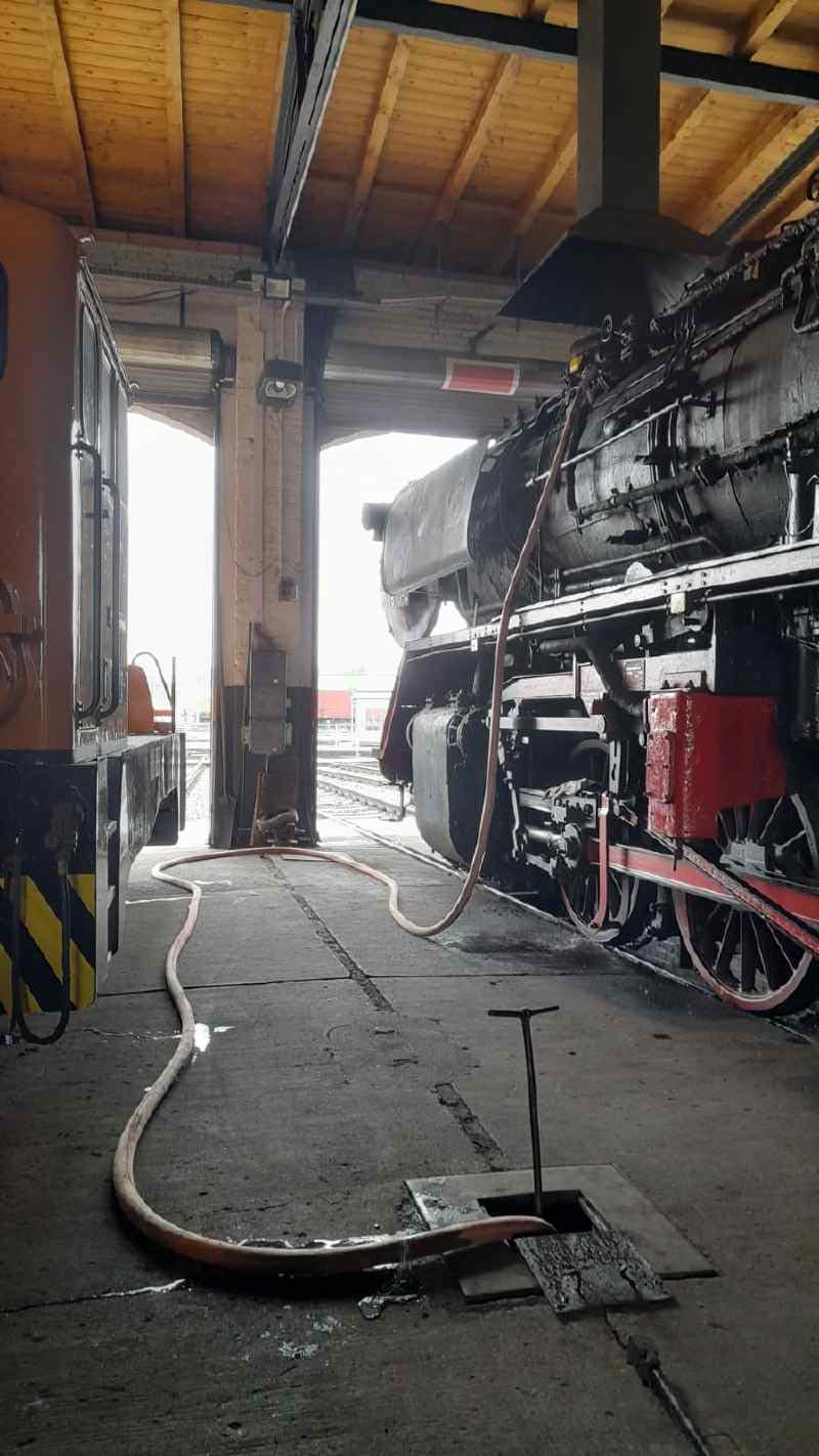 An diesem Wochenende wurde die Lok für den Einsatz vorbereitet. So wurde das Wasser im Kessel auf den für das Anheizen nötigen Stand gebracht