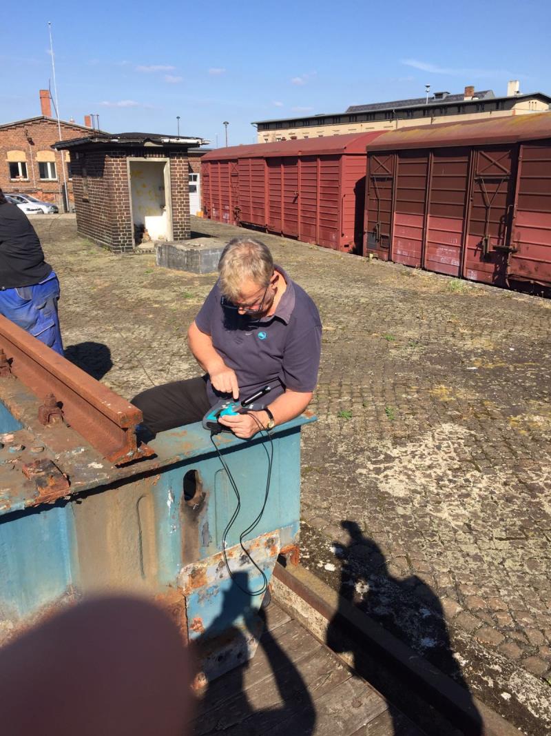 Wir berichteten im Frühjahr darüber, dass wir langfristig die Wiedererrichtung des Lokschuppens 1 planen und dass als erster Schritt an historischer Stelle wieder eine Drehscheibe errichtet werden soll. Dafür haben wir die Drehbrücke der Anlage in Parchim erworben und nach Wittenberge transportiert. Bevor es an die weitere Planung geht, ist allerdings erst eine Materialprüfung an den erworbenen Teilen notwendig, denn immerhin sollen die Hauptträger der Anlage ein Gewicht von ca. 200 Tonnen tragen können. Da wäre jede Materialermüdung fatal. Die Prüfung wurde nun mit gutem Ergebnis durchgeführt.