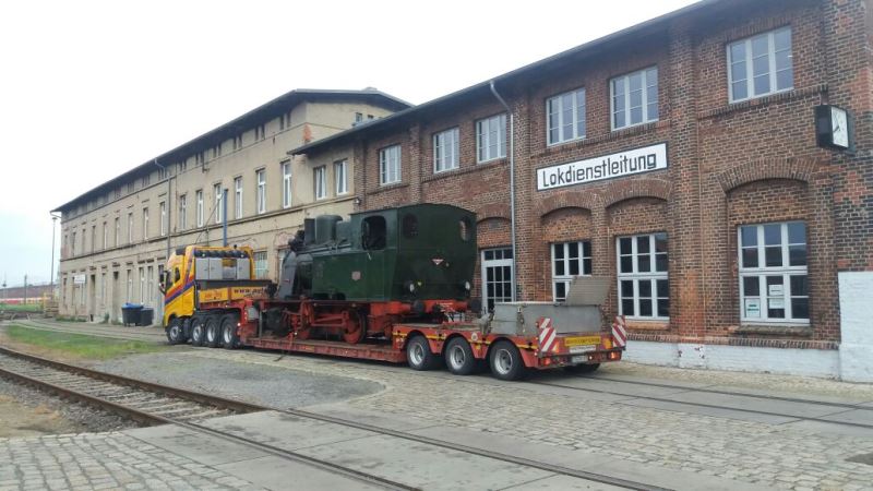 Am 29.5.2017 wurde Emma auf einen Spezialtieflader verladen und ging auf die Reise in den Harz, wo sie am 30.5. wohlbehalten ankam.
