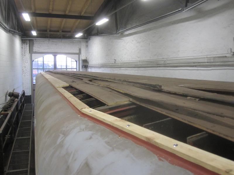 Da sich das Museum gerade in der Winterpause befindet und keine öffentlichen Veranstaltungen stattfinden, können wir uns wieder den größeren Projekten widmen. Dazu zählt der Beiwagen VB 197 805-5, der im Sommer gesandstrahlt wurde. Wie es häufig bei sehr alten Fahrzeugen bemerkt man die Alterung erst beim genaueren Hinsehen. So mussten wir feststellen, dass die hölzerne Dachkonstruktion an machen Stellen verrottet war und dass einige Blecharbeiten an der Unterkante der Seitenbleche des Wagenkastens notwendig waren. Wir haben uns daher entschlossen, den unteren Streifen der Blechverkleidung des Wagenkastens vollständig zu erneuern. Also wurde ein ca. 30 cm breiter Streifen rings um den Wagenkasten herausgeschnitten, neue Bleche geschnitten und angeschweißt. Anschließend wurden die Schweißnähte geschliffen, um keine hässliche Narbe zu hinterlassen.