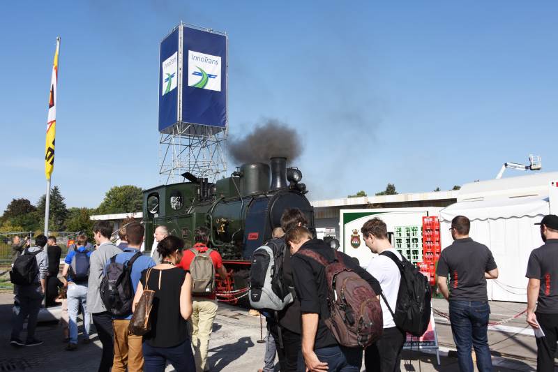 Unsere Dampflok "EMMA" gehört zweifelsohne zu den "Stars" auf der InnoTrans, der größten internationalen Fachmesse für Verkehrstechnik. Nachdem die Maschine wohlbehalten auf dem Messegelände angekommen war, wurde sie Montag (17.09.2018) von einigen Aktiven des "Historischen Lokschuppens Wittenberge" für den Einsatz auf der InnoTrans vorbereitet. Einen Tag später öffnete die Messe ihre Tore für das Fachpublikum. Zahllose Besucher aus aller Welt nutzen seither die einmalige Möglichkeit, auf dem Führerstand einer Dampflok mitzufahren. Die Lok ist immer dicht umlagert und die Aktiven haben alle Hände voll zu tun. Am 22. und 23. September 2018, den beiden Publikumstagen, ist das Messegelände für jedermann geöffnet. Auch an diesen beiden Tagen besteht die Möglichkeit für eine Führerstandsmitfahrt auf "EMMA", bevor sie dann in der kommenden Woche wieder in ihre Heimat Wittenberge zurückkehrt.